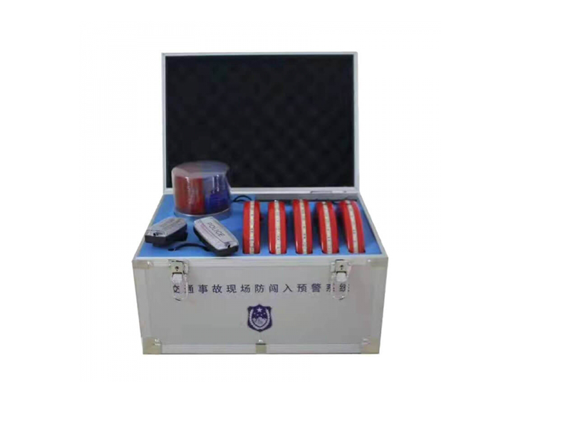 事故現(xiàn)場防闖入預(yù)警系統(tǒng)由四部分組成,分別為五個預(yù)警環(huán),兩個肩燈聲光預(yù)警接收器,一個預(yù)警燈,一個預(yù)警主機箱。