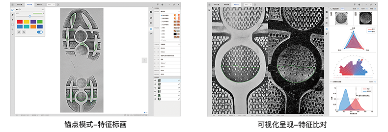 采用手指和筆觸結合的形式進行系統的交互和操作,首次采用錨點方式進行特征自由標畫,使得系統具備PS級別的特征標畫能力,提升用戶整體交互感知。
