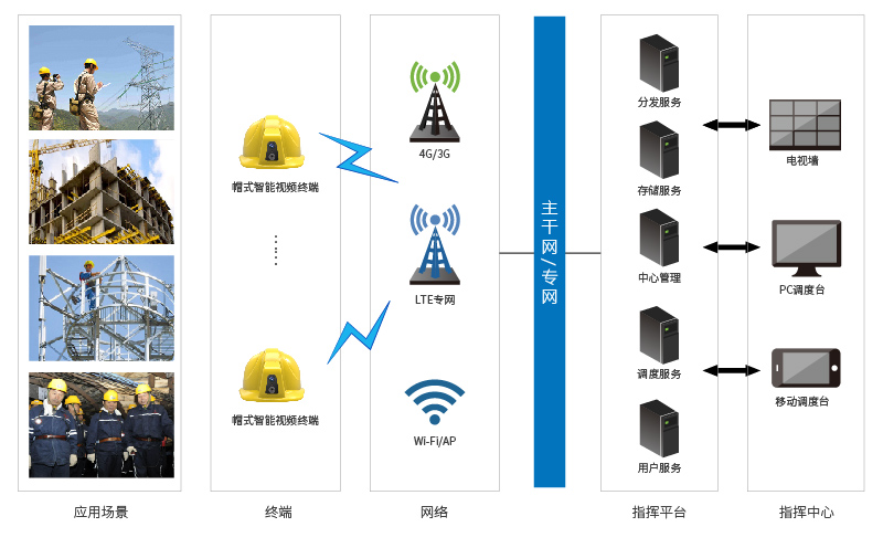 帽式智能視頻終端采用高速處理器,集高清視頻、音頻、4G和WiFi無線通訊、定位、存儲、報警模塊于安全帽內。通過4G、WiFi無線網絡實時音視頻信息傳輸、語音對講,可實時記錄現場情況、收集證據并遠程指導維修施工等。產品可廣泛應用于電力巡檢、工地巡查、鐵塔作業、爆破監管、搶險救災及檢修遠程指導等場景。